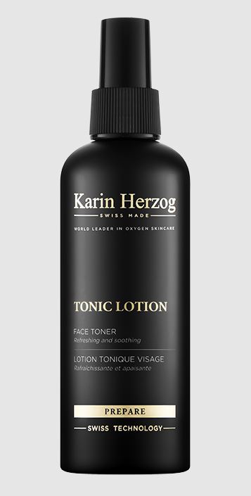 Pore Closing & Revitalizing Toner ▪ This ultra-refreshing pore closing toner dissolves the fine layer of residue left behind by hard water and removes any remaining traces of makeup. Provides an added layer of cleansing without irritation. The Tonic Lotion helps to restore the skin’s optimal pH balance, thoroughly preparing it for subsequent Karin Herzog oxygen treatments. Skin Type: All. Including sensitive.